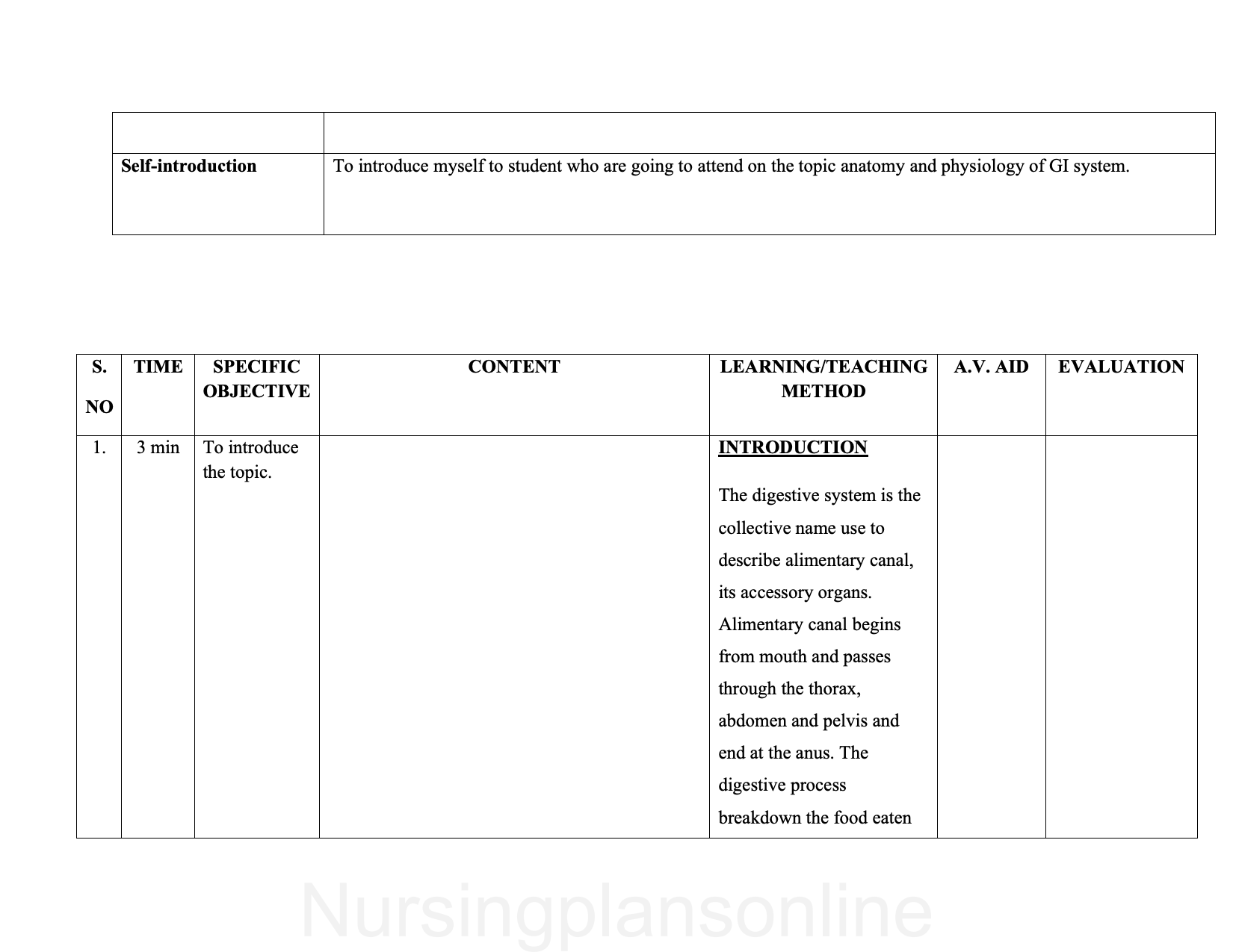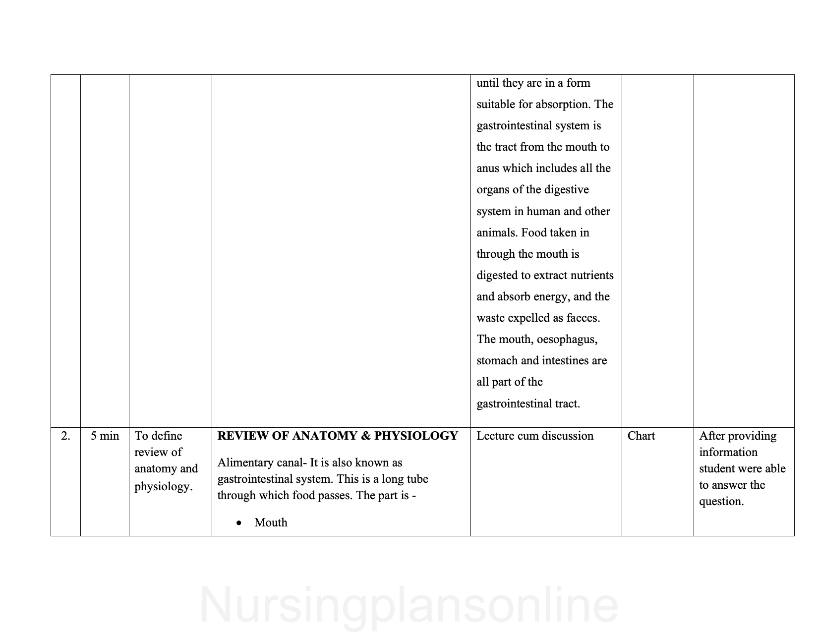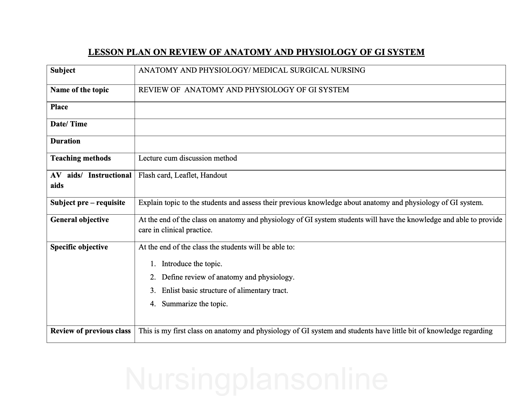 LESSON PLAN- REVIEW OF ANATOMY AND PHYSIOLOGY OF GI SYSTEM